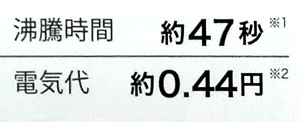 店舗にミニパンフレットのようなものがあったので見てみると、「沸騰時間 約47秒」と書いてありました。