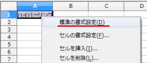 パソコン OpenOffice Calc ハイパーリンクの簡単な解除方法 2019年7月22日 2019年7月22日 エフ Facebook postはてブLINEPocketFeedly 当サイトはアフィリエイト広告を利用しています。 無料で利用できる表計算ソフト、OpenOfficeのCalc。 ネット情報をコピーしてペースト(はりつけ)したとき、リンクが付いてしまうことがあります。 これを解除する方法を調べてみたら、簡単にできるやり方がありました! 解除したいセルにカーソルを合わせる ↓ 右クリック > 「標準の書式設定」を選択する それで、ハイパーリンクの解除ができます。 簡単でしょ! やってみたところ、複数セルを選択して、一括して解除することも可能でした。 Facebook postはてブLINEPocketFeedly