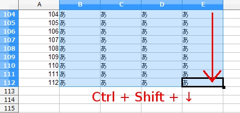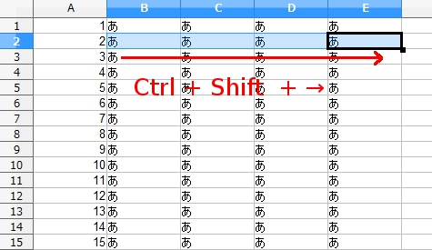 そこから、データ入りセルの一番端っこまでワープしてくれました。