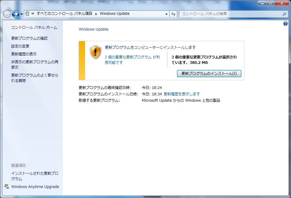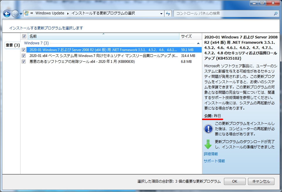 なんて書いていたら、Windows Updateの重要な更新があるみたいなのに気が付きました。