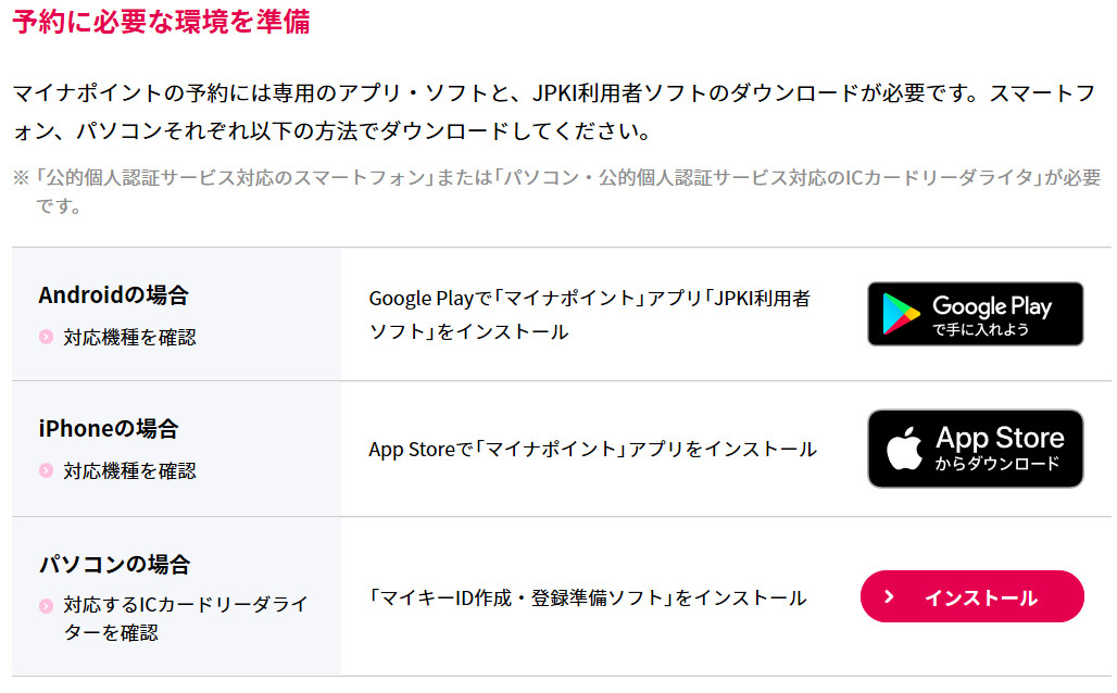マイナポイントの予約ができるようになっています。