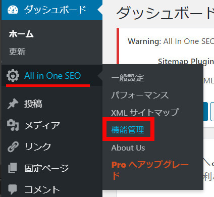 「All in One SEO Packが、ほかの(アクティブな)SEO または サイトマップのプラグインを検知しました。